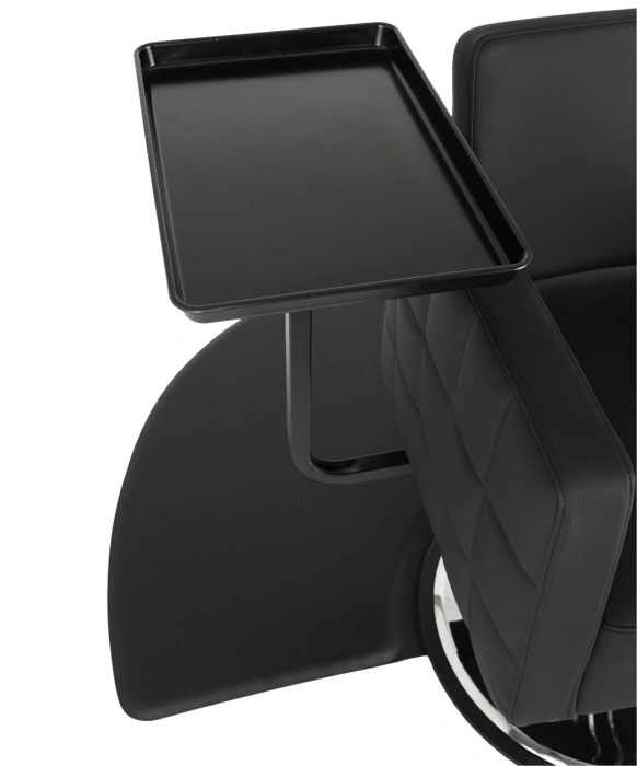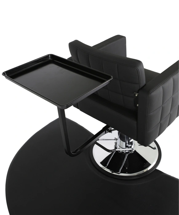 Experience salon efficiency redefined with Boss Beauty Designs' Rotating "Elite Quick Tray." This innovative accessory revolutionizes your workspace with its seamless integration onto your styling chair's hydraulic piston. This innovative salon caddy will attach quickly to any salon chair for use during a color application, and then just as easily, it will detach for cutting and styling. The "Elite Quick Tray" attaches to an arm below the salon chair that allows the tray to swivel almost completely around the entire perimeter of the chair for unmatched convenience. This rotating salon caddy will provide easy access to your color bowls, foils, shears, rollers, and all other tools with no more reaching back & forth and no more stumbling around with a traditional tray on wheels. Enjoy unparalleled convenience as the "Quick Tray" offers a remarkable 280-degree swivel, granting effortless access to essential tools, minimizing strain, and eliminating clutter. Crafted for longevity, its durable construction ensures sustained cleanliness and efficiency without the need for wheels. Elevate your hairstyling prowess and impress clients with professional finesse. Make every salon session a seamless success with the "Elite Quick Tray" from Boss Beauty Designs.