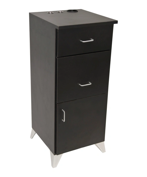 The Embassy Styling Station is a free-standing salon styling station. It is Made 100% in the USA of all-wood to enhance its quality while also supporting local Americans who share our passion for American craftmanship. This free-standing station is perfect for any stylist needing to save space. It features 4 fashionable metal feet, 2 wide drawers and 1 cabinet for plenty of storage. The top is a great work space that is wide and very easy to clean. This station is shipped fully assembled and requires no assembly at all. For your convenience, you have the option to add customizable appliance holders to this styling station as pictured.
