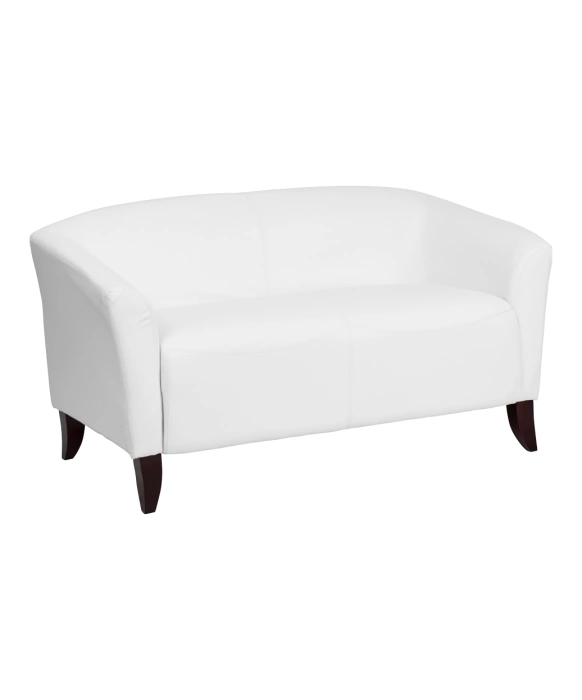 DescriptionThe Imperial Collection by Flash Furniture brings you this stylish loveseat that is sure to bring a touch of comfort and class to any salon waiting area. This sturdy loveseat features hardwood construction throughout and a 1.8 high density foam cushioning, adorned with LeatherSoft upholstery in your choice of five beautiful colors. The Imperial Reception Loveseat also includes cherry-stained wood feet, slightly curved seat & back, and sloping arms to ensure guests’ comfort while they wait. For design continuity, we also carry the Imperial Leather Reception Chair and Imperial Leather Reception Sofa!