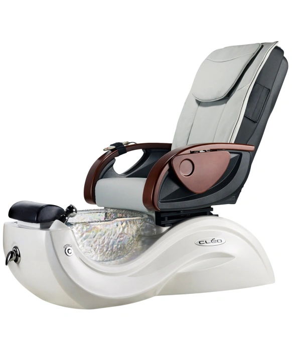 The J&A Cleo GX Pedicure Spa w/ Glass Bowl is Made in America and features a hand crafted fiberglass base that cradles a strong and durable glass basin. The hand crafted base of the luxurious Cleo GX Pedicure Chair features a Durable Infiniti Pipeless Whirlpool, dual function shower sprayer and single handle faucet. This beautifully designed and well built pedicure spa features luxurious vinyl upholstery, a multi function electronic Shiatsu massage chair top as well as swing up/down armrests for easy client access.