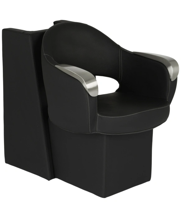The Luna Silver Dryer Chair is part of the stunning Luna family of products and offers modern style, great functionality, and lasting durability. The distinct brushed metal accents on this dryer chair match perfectly with the other chairs in the Luna seating family and will also pair well with any of our styling chairs, all-purpose chairs, and backwash units. The Luna Silver Dryer Chair is built on a durable wood frame and features premium vinyl with intricate stitching that is sure to make a lasting impression on all of your clients. This professional dryer chair also features an extra wide seat that is ideal to accommodate even your largest of clients and keep them comfortable throughout their service. For added convenience, this item ships fully assembled and is ready to use within minutes of unpacking. For great design continuity, pair this unit with the Luna Backwash and Luna Styling Chair to complete the perfect look!