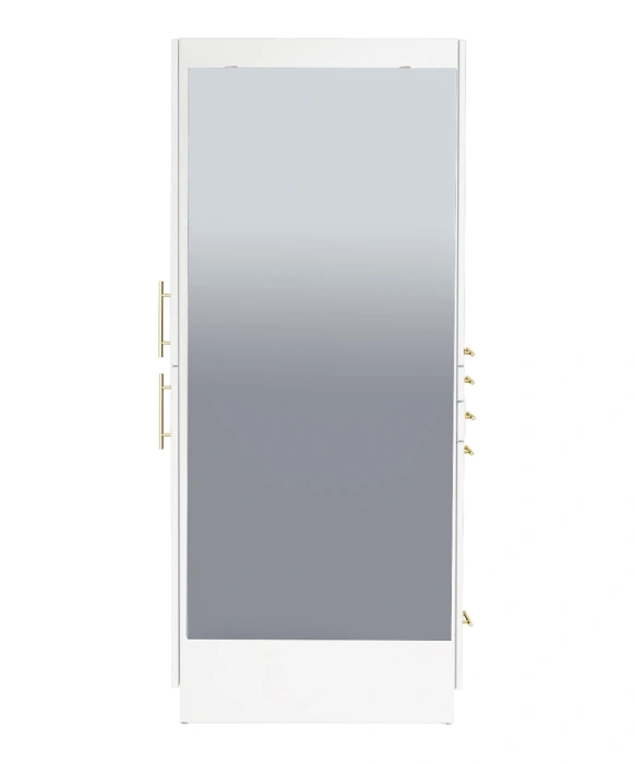 The Maxim Gold Double-Sided Styling Station is 100% Made in the U.S.A. and is perfect for not one, but TWO stylists! This free-standing, two-sided salon styling station ships to you fully assembled and comes complete with (2) 60" full-length mirrors and is beautifully finished with brushed brass gold metal handles. Each side of the Maxim Gold Double Sided Styling Station is identically equipped with an upper storage cabinet, two utility drawers, storage cabinet with a slide-out tool panel to accommodate one blow dryer and two curling irons, as well as one lower drawer for additional storage! This dual sided station is designed with style and functionality in mind, and is sure to suit any salon décor! The Maxim is available in your choice of 40 laminate colors, so ask your Buy-Rite Beauty Sales representative today!