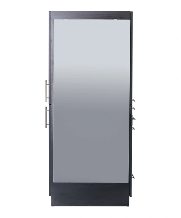 The Maxim Styling Station is 100% Made in the U.S.A. and is built with the utmost craftsmanship found in the salon equipment industry. This free-standing salon styling station ships to you fully assembled and comes complete with a 60" full-length mirror and sleek brushed metal handles. The right side of the Maxim Styling Station features an upper storage cabinet, two utility drawers, a storage cabinet with a slide-out tool panel to accommodate one blow dryer and two curling irons, as well as an extra lower drawer for additional storage! The left side of the station offers even more storage space with two large cabinets. This station is designed with style and functionality in mind, and is sure to suit any salon décor! The Maxim Styling Station is available in your choice of 40 laminate colors, so ask your Buy-Rite Beauty Sales representative today!