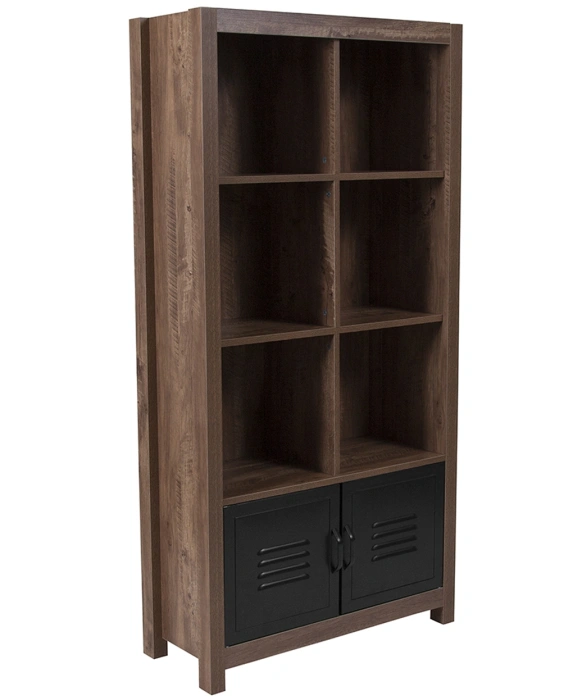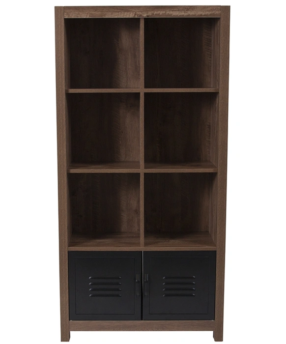 The Monroe Retail Display Unit w/ Storage offers a contemporary design and is the perfect size to display your retail products while also providing extra storage space for product overflow. This Retail Display Unit features an oak woodgrain laminate finish, 6 open spacious storage compartments, and 2 enclosed storage compartments that offer great extra storage. The Monroe Retail Display Unit also features black metal locker style doors, fixed compartment shelves, a black powder coated frame finish, and plastic floor glides to protect the display unit and floor. The Monroe Retail Display Unit w/ Storage is the perfect combination of style and functionality, with a bold style that is eye-catching for clientele.