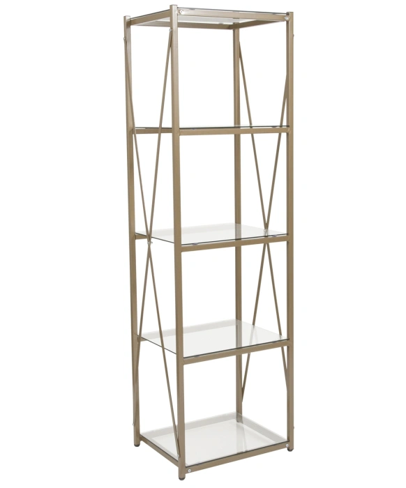 The Newbury Salon Retail Display Unit is a stunning addition to any salon or spa reception area that wants to increase their retail sales. With its streamlined, modern style and matte gold frame, the Newbury Retail Display provides a minimalist yet eye-catching style sure to attract clients in order to help increase retail sales. The Newbury Retail Display features four shelves with clear tempered 8mm glass, a stylish matte gold cross frame, and Adjustable Floor Glides to protect the display and the floor. The Newbury Salon Retail Display Unit is an ideal size to highlight your retail products while also bringing a touch of modern style to your reception area.