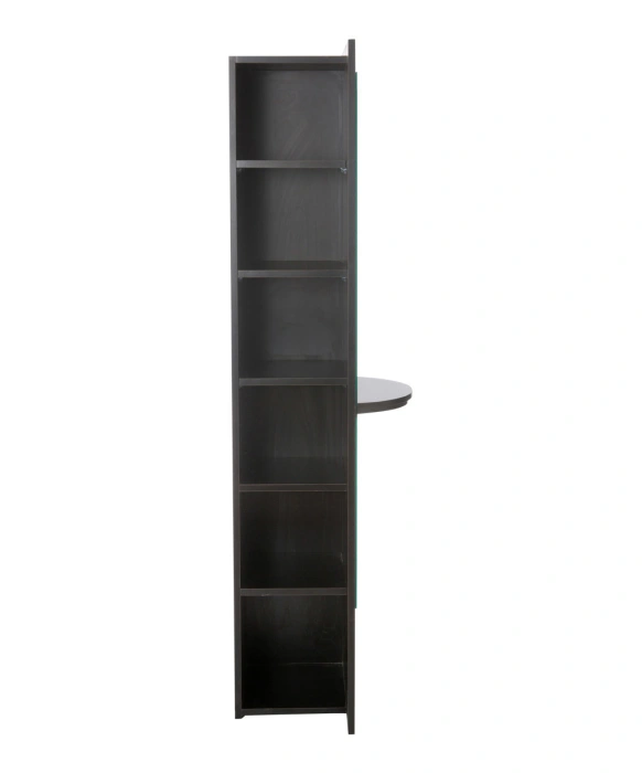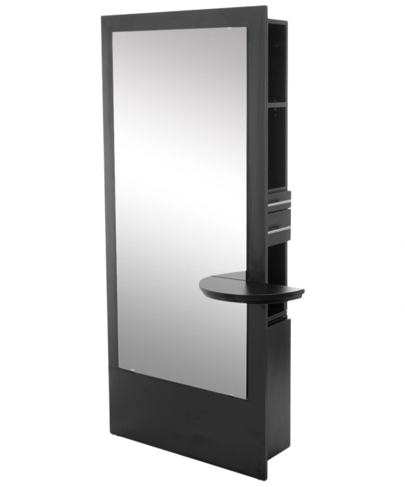 The Nobu Styling Station is 100% Made in the U.S.A. and is available in 20 popular laminate colors. This free standing salon styling station ships to you fully assembled and comes complete with a 60" full-length mirror. The right side of the Nobu Styling Station features an upper scissor drawer, a utility drawer, a storage cabinet with an adjustable shelf and a slide-out tool panel to accommodate one blow dryer and two curling irons. The Nobu Styling Station offers additional storage with five adjustable shelves on the left side as well as a 9" x 18" front utility shelf for quick access. With style and functionality in mind, this styling station is outfitted with full extension glides and brushed metal handles. Please call our sales team at (800) 477-6655 to discuss all of the customizing options that we offer as well!