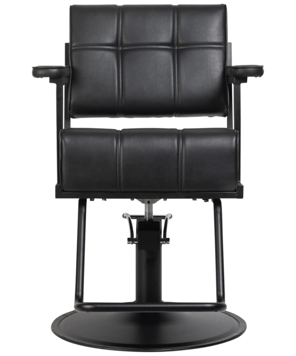 The Obsidian Styling Chair is an all black styling chair that is built on a black powder coated steel frame and is ready to withstand the wear and tear of any bustling salon. Completely covered in an all black smooth vinyl, the Obsidian Styling Chair has padded arms and an open seating concept that provides easy cleaning and upkeep. With its extra-wide seating area and its added leg support cushion, the Obsidian Styling Chair is one of the most comfortable styling chairs that we offer. The Obsidian Styling Chair is also available with multiple base options that are built to withstand heavier weighted clients and include a 2 year warranty on the hydraulic pump.