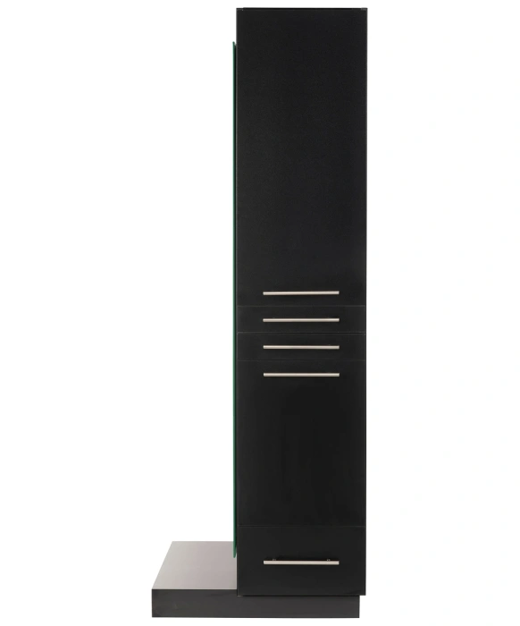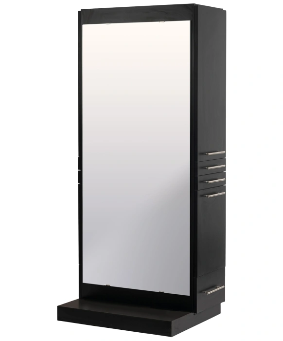 The Omni Styling Station w/ Mobile Base is inspired by our legendary Maxim Styling Station but also includes a lower base with hidden wheels for complete mobility. This free-standing styling station features clean, modern lines and ships to you in two fully assembled pieces complete with a 60" full-length mirror. A stylist working on the Omni Styling Station will be greeted on the right-hand side by an upper storage cabinet, two utility drawers, a slide-out tool panel to accommodate one blow dryer and two curling irons, and a bottom storage drawer! The left side of the station offers even more storage space with two large cabinets. Additionally, the Omni also features hidden wheels on the bottom for easy cleaning and maneuverability throughout your salon or spa. This feature would be a great asset to any cosmetology school looking to quickly transform their space from classroom to hands-on work-space. The Omni Styling Station is available in your choice of 40 laminate colors that are sure to match your specific salon decor! And if you have the need for (2) stylists to operate at (1) station we offer the Omni Double Styling Station w/ Mobile Base.