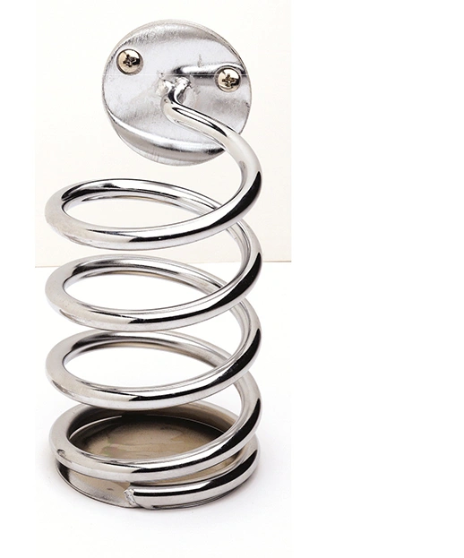 This is the Pibbs 1530 Twist style, stainless steel wall mount appliance holder. It holds both curling irons and flat irons. Since it is stainless steel it is able to hold hot appliances while you are using them. It is designed to mount on the wall next to your station for quick and easy access to your tools. See the matching Pibbs 1509 Twist Dryer Holder as a matching unit.