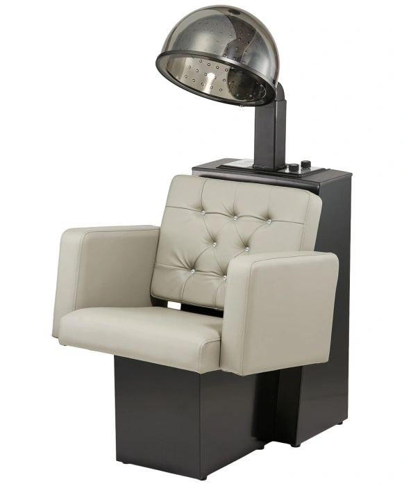 The Pibbs 2269 Fondi Dryer Chair is 100% Manufactured in the U.S.A. and is designed with durability, client comfort, and world-class style in mind. This American Made dryer chair features a luxuriously cushioned extra-wide seat with extra-wide armrests designed for client comfort, a rust resistant base for unmatched durability, and is embellished with sumptuous tufted vinyl. The Pibbs 2269 Fondi Dryer Chair can accommodate any standard size box dryer or be customized to fit the Pibbs 514 or 516 dryer. As part of the Pibbs Fondi Family, this dryer chair matches perfectly with the Fondi Styling Chair and Fondi Backwash Unit. The Pibbs 2269 Fondi Dryer Chair provides outstanding comfort and durability, while adding an elegant, classic touch to any salon.