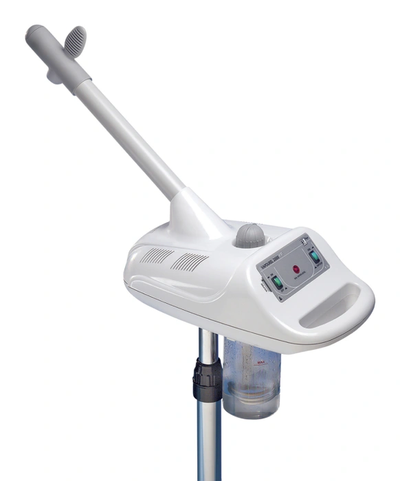 The Pibbs 2555 Vapourel Facial Steamer a Professional facial Steamer that is Made in Italy and is great quality. This steamer features a directional nozzle w/ felt ring, separate vapor and ionization controls, automatic shut off function & low water level indicator light. This unit also comes with a fully height adjustable metal stand and base that is very durable and easy to move around the spa.