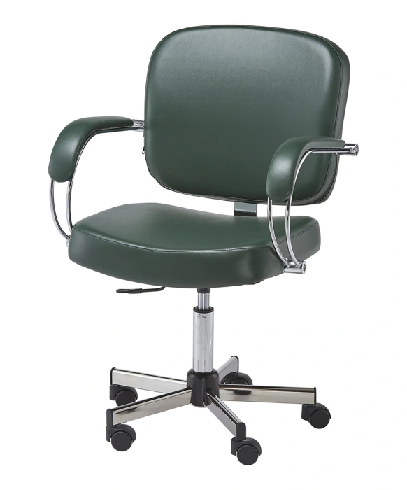The Pibbs 3992 Latina Desk Chair is a perfect seating solution for the receptionist at any salon or spa. This salon reception chair features durable chrome arms, upholstered armrests and it is elegant and built to last. The Latina Desk Chair also features a sturdy 5 star chrome base with an adjustable lift to fit any reception desk. It is available in 40 vinyl colors so you will easily be able match and compliment the colors of your salon or spa! This reception chair is part of the Latina collection by Pibbs which includes a matching Latina Styling Chair, Latina Dryer Chair and Latina Backwash Unit. *Expedited shipping available please contact your Buy-Rite Sales Rep