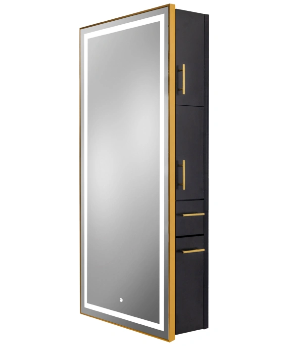 Pibbs 9220 Lumina Gold Frame LED Salon Mirror & Storage Server