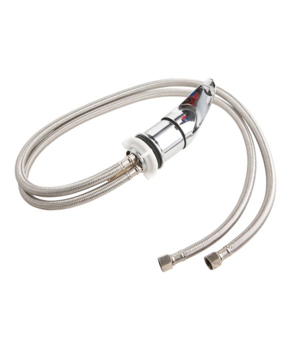 The Salon Backwash Standard Fixture is a single-lever faucet that is versatile and compatible to fit most shampoo backwash units. The Salon Backwash Standard Fixture features a single on/off lever, hot and cold-water control, durable metal hot and cold supply lines, and high-quality chrome finishing that adds lasting refinement to any shampoo backwash unit.