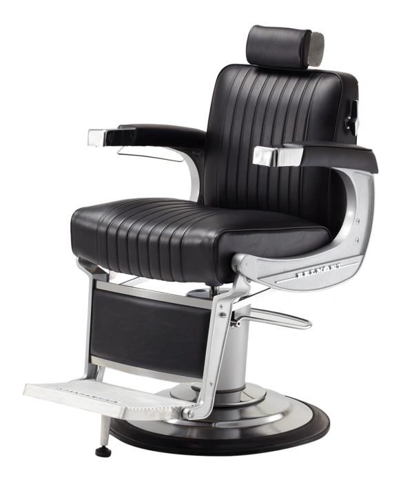 The Elegance Barber Chair by Takara Belmont is Made in Japan and offers the perfect combination of quality, style and comfort. Nothing says "main street barber" like the Elegance Barber Chair. Cast aluminum body, towel bar and clipper hook complete the old-time look. This is a great quality retro barber chair that is built for modern times. This barber chair is available in 60 custom vinyl colors with your choice of a standard hydraulic base or upgraded electric base. **Please allow 6 - 8 weeks for shipment of colors other than Black.